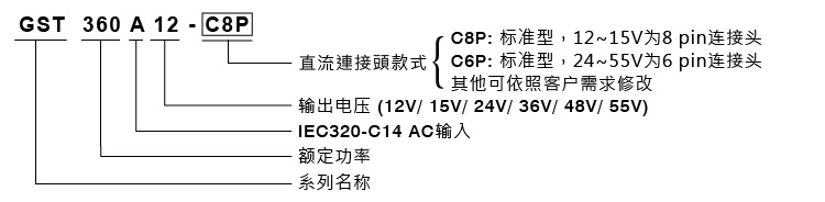 GST360A系列:360W 高可靠工業級節能適配器