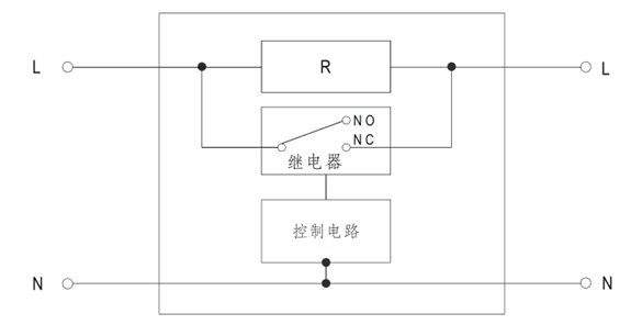 ICL-16的線路方塊圖如圖一所示,是由三個方塊所組成,方塊一是水泥電阻R,這排除了負溫度系數熱敏電阻會因溫度上升降低阻值的問題。方塊二是繼電器,其作用是將水泥電阻短路,減少損耗。至于繼電器什么時候要短路,就是由方塊三控制電路來決定。